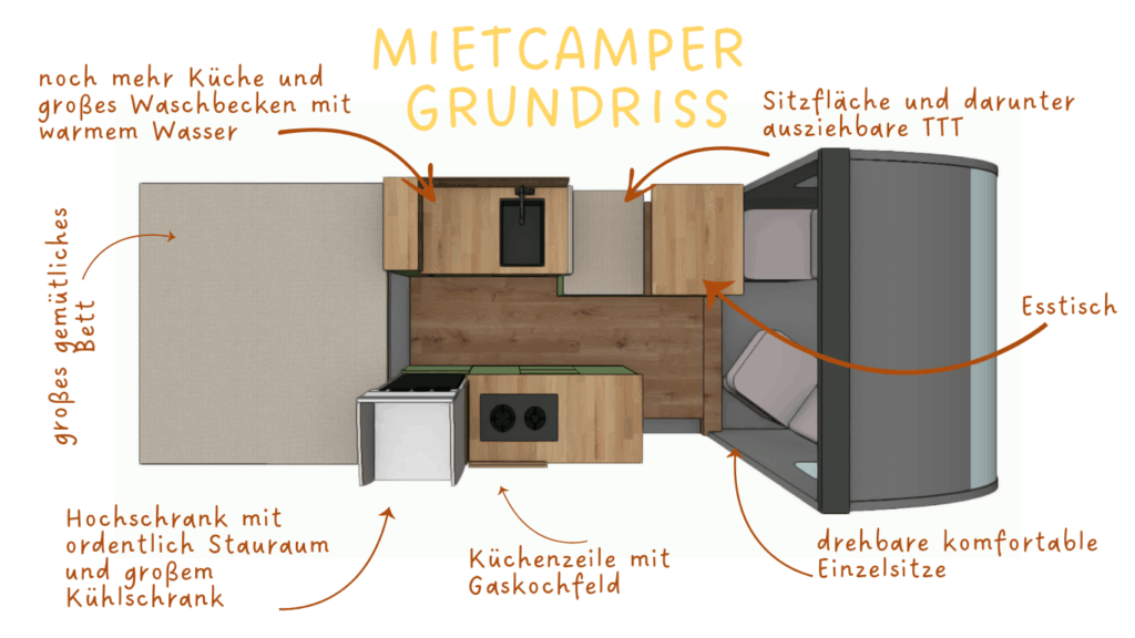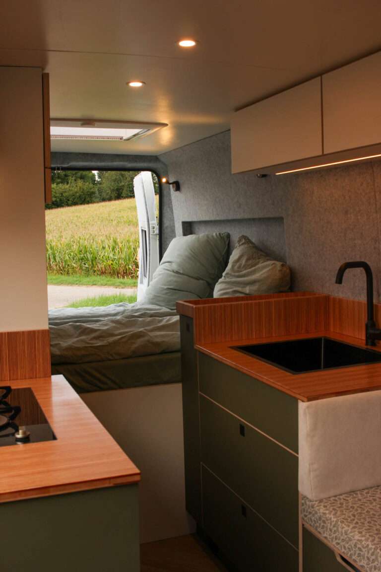 Mit einer großen Küche, einem komfortablen Bett, viel Stauraum und allem, was man unterwegs wirklich braucht.